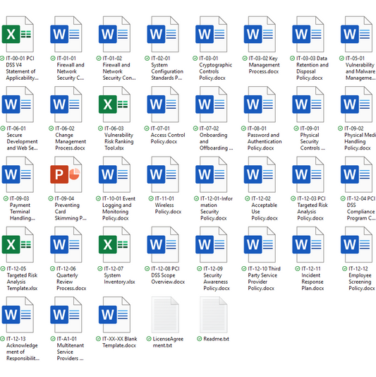 Ready-to-use PCI DSS V4 policy templates used by merchants, service providers, and QSAs worldwide.